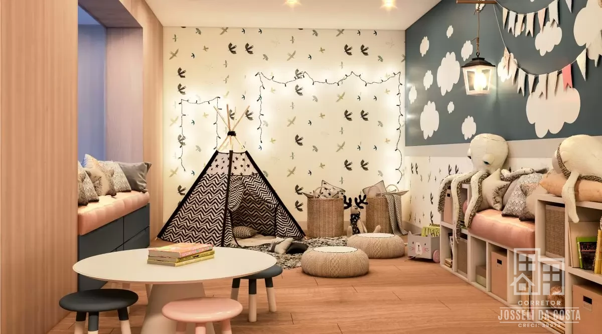 O empreendimento conta com ambientes de uso comum projetados para agregar mais conforto e bem estar no seu dia-a-dia: Salão de festas mobiliado com vista panorâmica, Coworking, Espaço Kids, Hall de Entrada mobiliado e decorado.